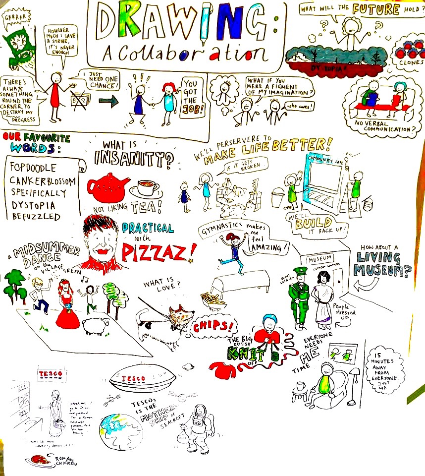 DrawingACollaboration is a pilot project carried out in Seacroft in association with LS14 Trust and Space2 Leeds. Funded by Victoria Gate fund and Leeds Cash Fund, we delivered four workshops where people talked, listened and drew. This took place at LS14 trust digital Lounge, Henry Barran Family Learning Centre with Space2 Fresh Women’s group Space 2’s The Men;s Room at Denis Healey Centre, a canal barge trip with a mix of people form east and west leeds and then a finale event at Seacroft Gala 2016.